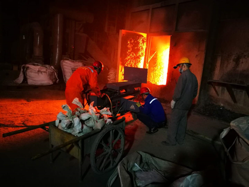 傳統(tǒng)的轉(zhuǎn)爐碳基熱態(tài)投補(bǔ)料一般含有10%以上的瀝青/樹脂,使用時(shí)由施工人員進(jìn)行作業(yè),手工將材料投入爐內(nèi)需修補(bǔ)的位置,在高溫作用下,瀝青等有機(jī)物軟化、液化,賦予材料良好的黏結(jié)性和一定的流動(dòng)性能,使投補(bǔ)料能夠在需要修補(bǔ)的位置黏結(jié)鋪平,并形成牢固的碳結(jié)合,達(dá)到修補(bǔ)爐襯的目的。